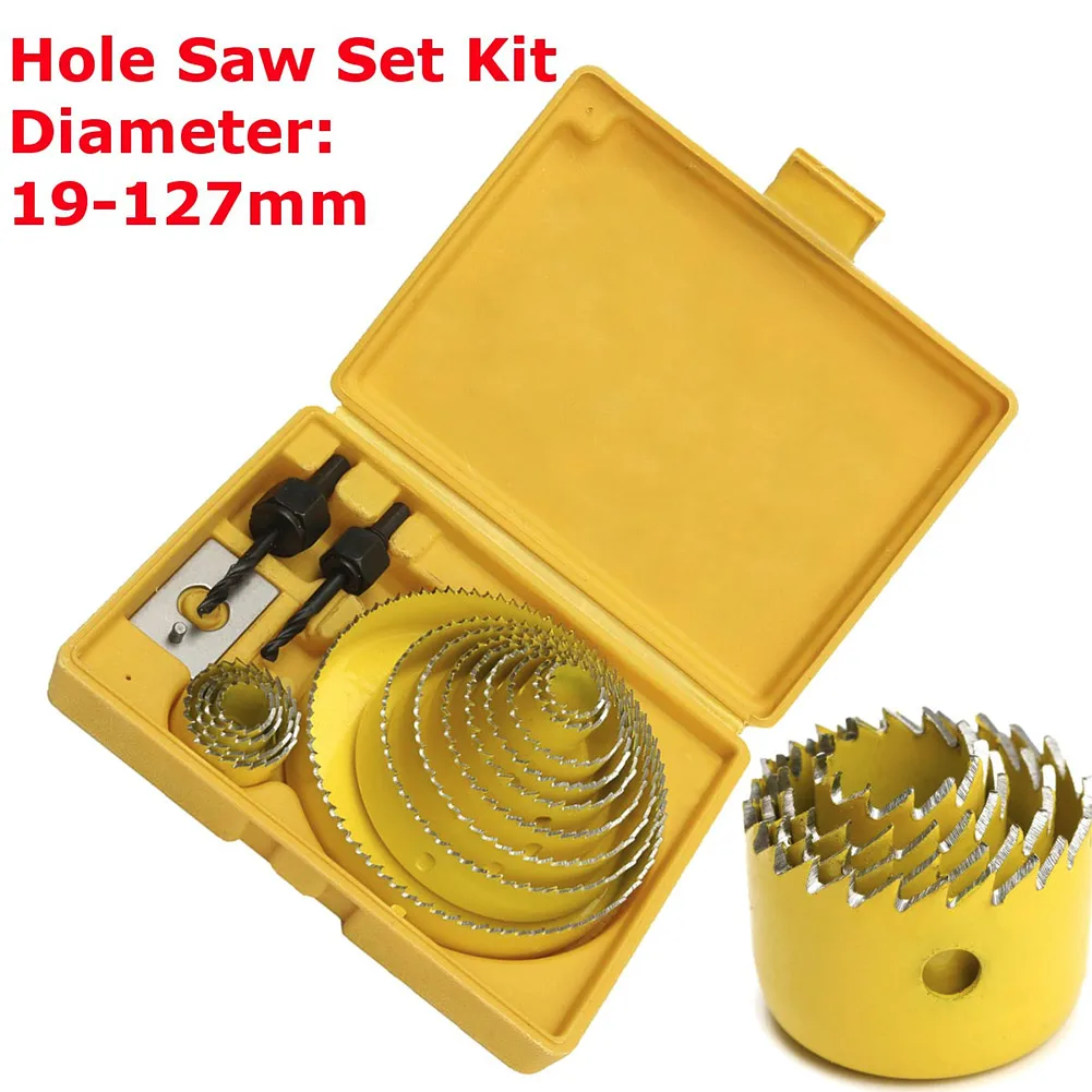 BEST 16Pcs Carbon Steel 13 Hole Saw Kit 19-127mm Wood Working Metal Holesaw Cutting Tool QP2
