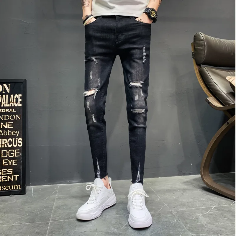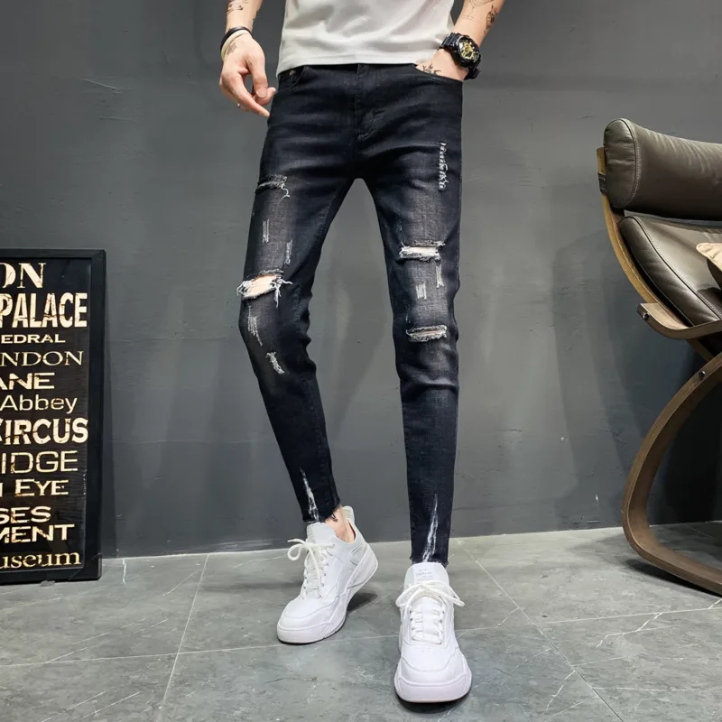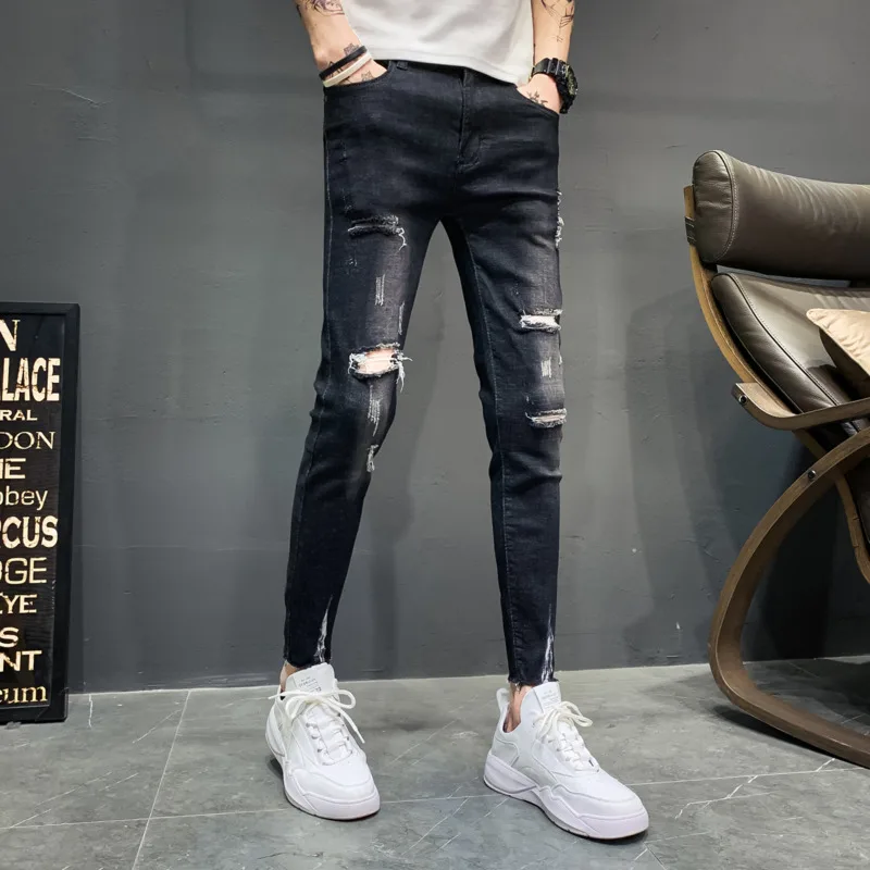 2019 summer new product explosion thin nine points elasticity jeans homme slim feet Korean version