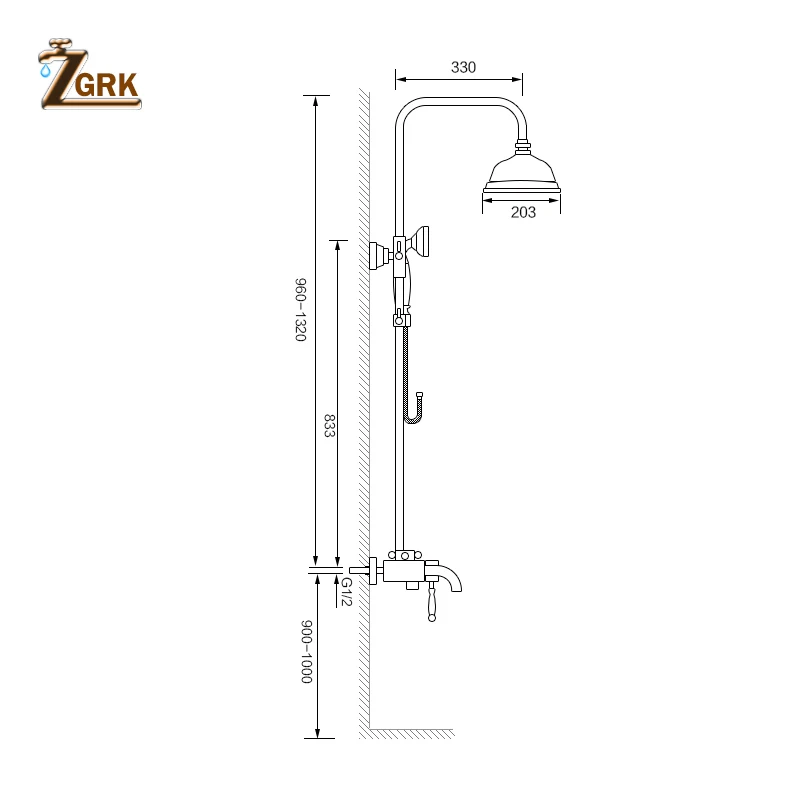 ZGRK Shower Faucets Bathroom Mixer Taps Top Spray Rainfall Shower Head Washing Faucet Antique Showe