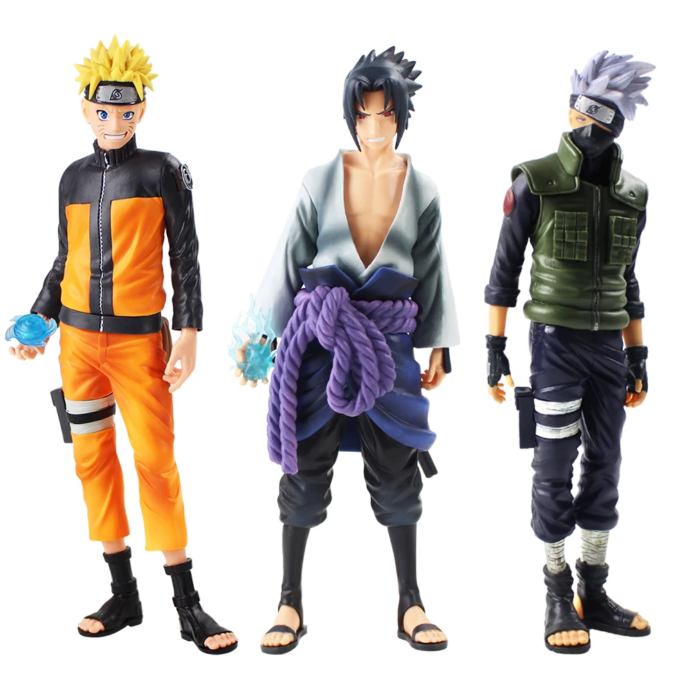 3Styles 28cm Anime Naruto Shippuden Uzumaki Uchiha Sasuke Hatake Kakashi Cartoon PVC Figure Grandis