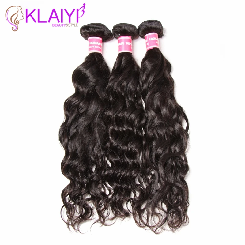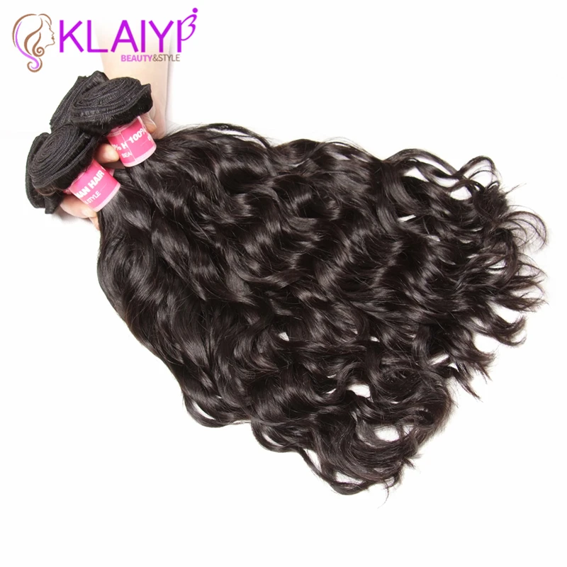 ORIGINAL Klaiyi Hair Products Indian Hair Bundles Natural Wave 100% Remy Human Hair Weave Machine Double Wef