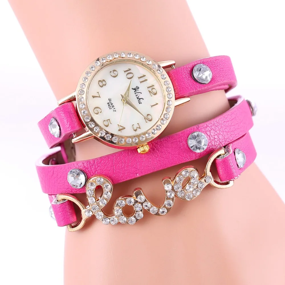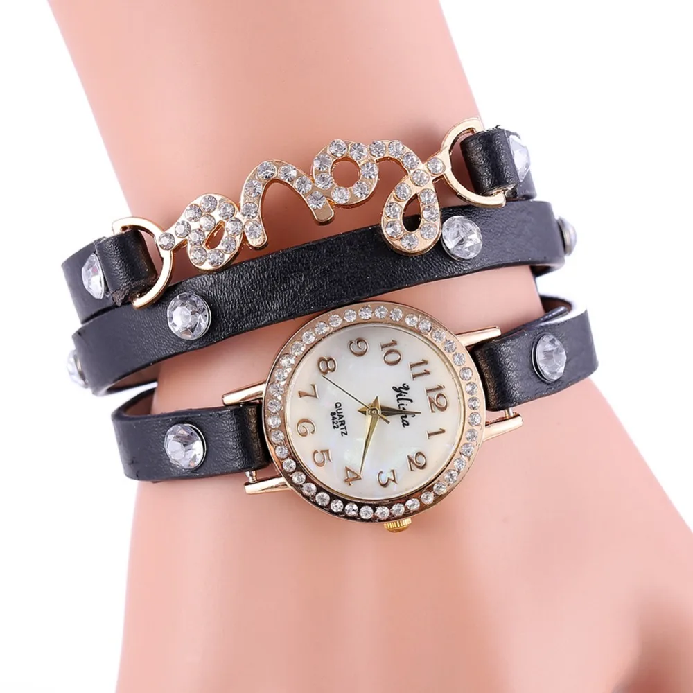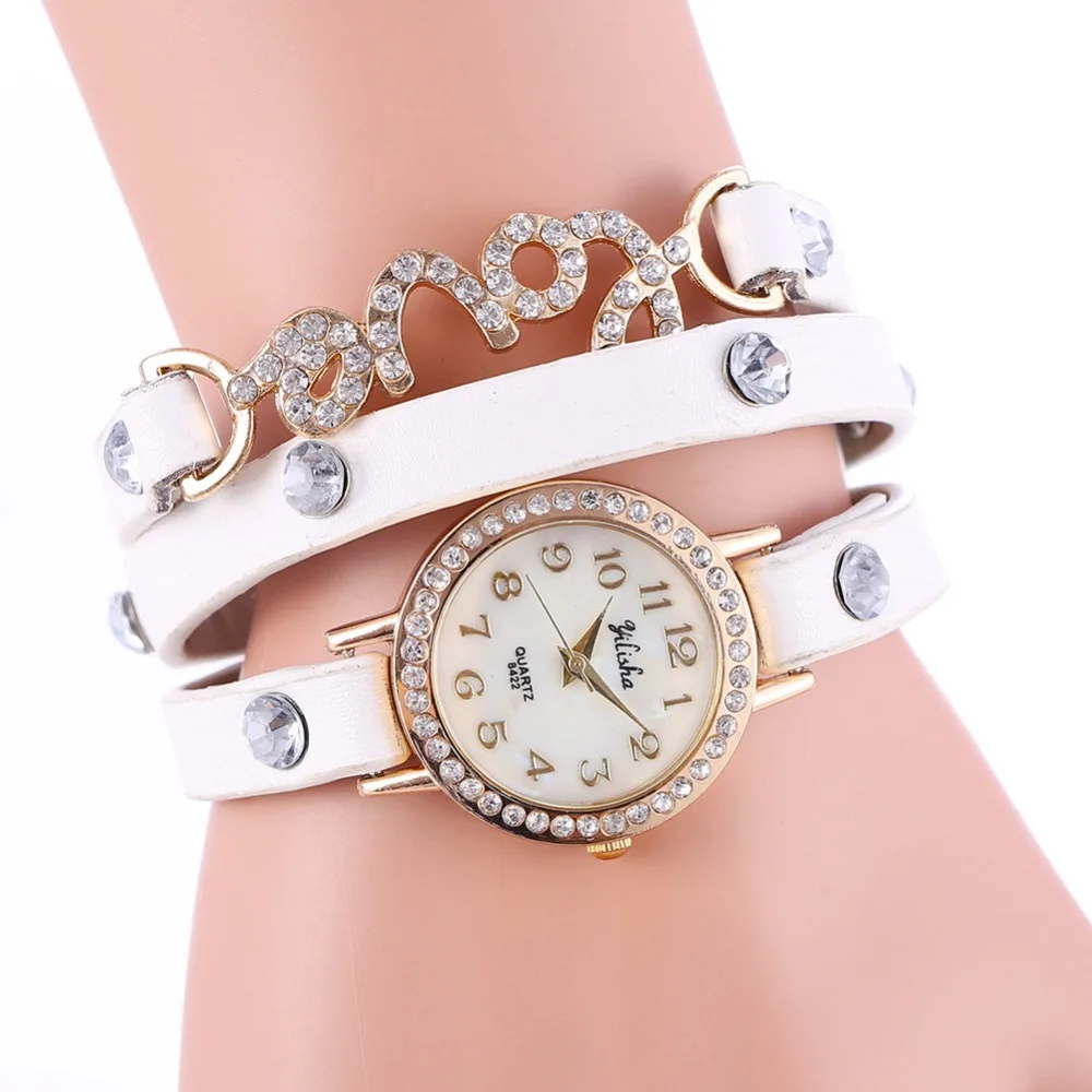 New Products LuxuryFashion Crystal Rhinestone Women Watch Leather Bracelet Strap Casual Waterproof