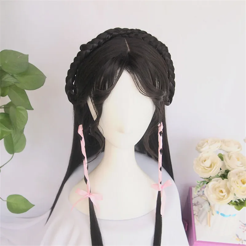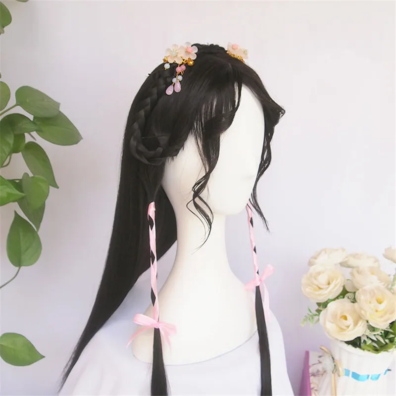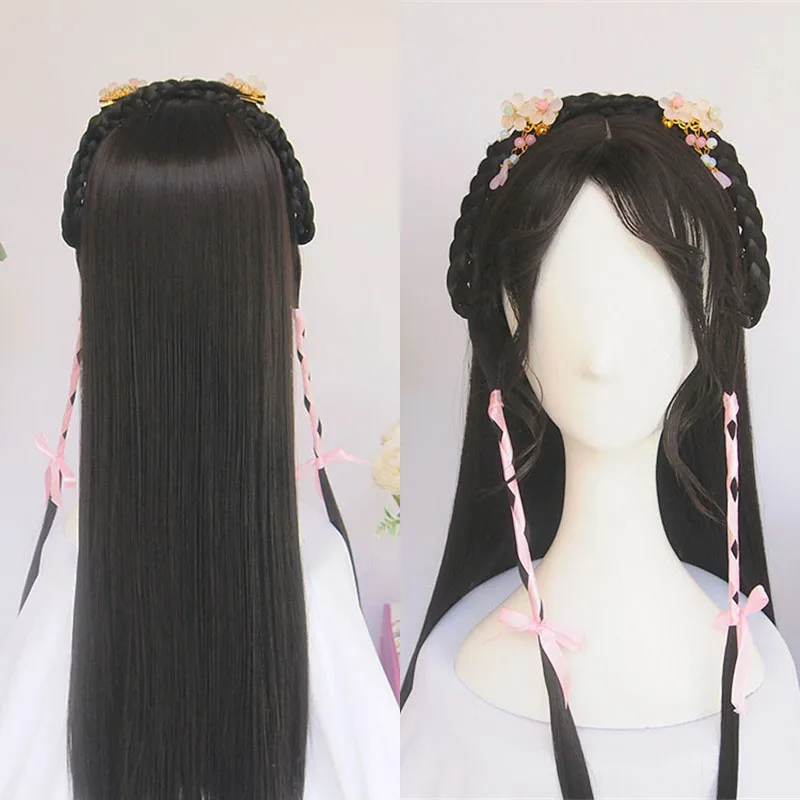 BEST WEILAI wigs for women Vintage wig Ancient Chinese Wig ponytail Long straight black hair Air bangs M